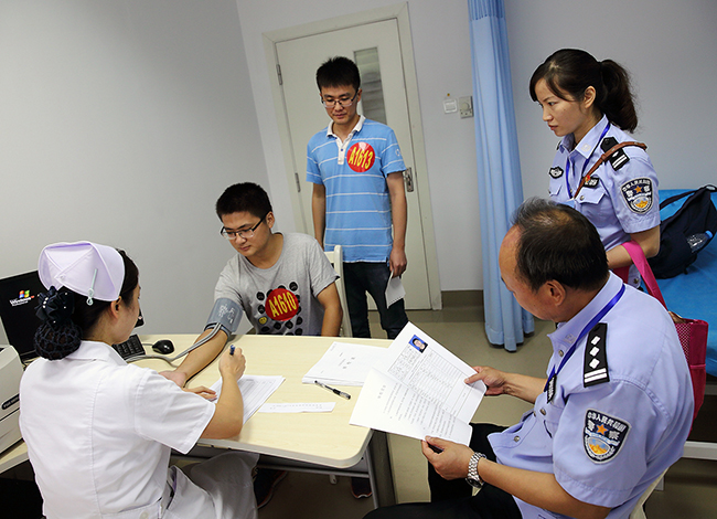 此次体检是在省公务员局的指导下,由省厅政治部统一组织,省局政治部具体实施。体检项目和标准按照省委组织部、省人力资源和社会保障厅、省卫生厅关于录用人民警察体检项目和标准的有关规定设立,并根据报考普通警察和具有专业要求的警察职位分别确定了不同标准,体检医院由省公务员局指定医疗机构。为确保此次体检工作有序开展,在制定周密工作方案的基础上,召开专门会议,严明纪律,落实责任。同时,省厅、省局和戒毒局纪委同志进行现场监督,确保公平、公正。